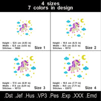 Unicorn Embroidery Design with Stars, Moon & Clouds