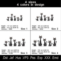 Cute Halloween machine embroidery design with five black cats sitting in a row – perfect for spooky and cat lover projects.