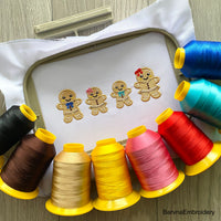 Perfekt für die Feiertage! Dieses Maschinenstickereimotiv zeigt eine entzückende Reihe von Lebkuchenfiguren mit Aufschriften - Papa, Mama, Schwester, Bruder. Verleihen Sie Ihren Projekten mit diesen entzückenden Motiven einen Hauch von Festtagsstimmung. Sie sind ideal für verschiedene weihnachtliche Bastelarbeiten und werden Ihren Kreationen Wärme und Freude verleihen. Jedes Motiv wurde sorgfältig für die Maschinenstickerei hergestellt, um eine hohe Stickqualität zu gewährleisten. Genießen Sie es, personalisierte Geschenke zu kreieren oder Ihrer Einrichtung einen weihnachtlichen Touch zu verleihen! Dies ist ein digitaler Download - 1 Zip-Ordner und 8 Dateiformate für Maschinenstickerei (.Dst .Jef .Hus .VP3 .Pes .Exp .XXX .Emd) 9 Farben im Design 4 Größen Größe 1: Höhe - 7,3 cm (2.93 in) Breite - 16 cm (6.33 in) Stiche - 19036 Größe 2: Höhe - 8 cm (3.20 in) Breite - 17.5 cm (6.92 in) Stiche - 21070 Größe 3: Höhe - 8.7 cm (3.48 in) Breite - 19 cm (7.51 in) Stiche - 23290 Größe 4: Höhe - 9,4 cm (3.75 in) Breite - 20,5 cm (8.10 in) Stiche - 25605