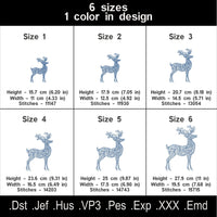 A stylized one-color deer embroidery design in side view, filled with decorative swirls. Ideal for Christmas, winter, or woodland embroidery projects. Instant download file.