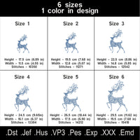 Stylized deer embroidery design created in one color with decorative swirls. Perfect for Christmas, winter projects, or festive gifts. Easy to stitch and suitable for beginners. Instant download digital file.