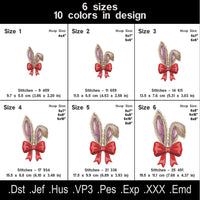 Bunny Ears With Red Bow Embroidery File